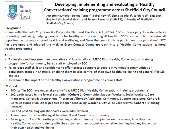 Implementing healthy conversations training programme in Sheffield City Council