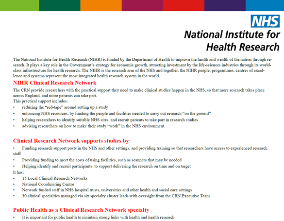Public Health Research and the NIHR Clinical Research Network