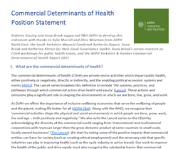 The Y&H ADPH and Public Health Network have published a consensus statement on the commercial determinants of health which is rooted in available evidence. It details why these determinants matter to our health and society and outlines harmful commercial practices such as influencing and hindering policy-making, and massive marketing campaigns promoting unhealthy products. Next, it sets out the public health approach to counter such commercial tactics where they are harmful to health through shared key principles and initial actions.