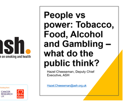 Key speakers include Professor Linda Bauld OBE (University of Edinburgh), Professor Mark Petticrew (London School of Hygiene & Tropical Medicine) and Hazel Cheeseman (Deputy Chief Executive, Action on Smoking & Health).